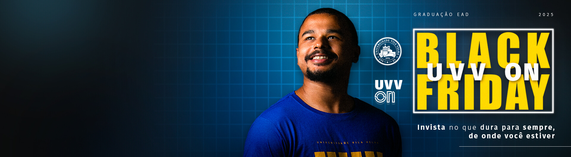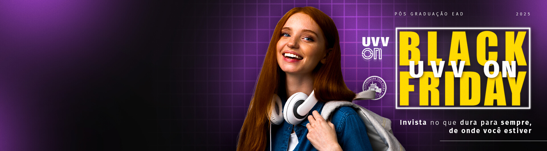 Turbine sua carreira com a Pós-Graduação EAD da UVV ON. Matrículas realizadas durante a semana de Black Friday recebem 70% off no curso inteiro. Oferta válida de 27/11/25 a 05/12/25.